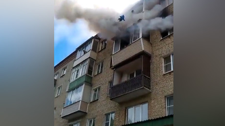 Family with children jumps from burning 5th floor in horrifying footage (VIDEO) Watch Live News